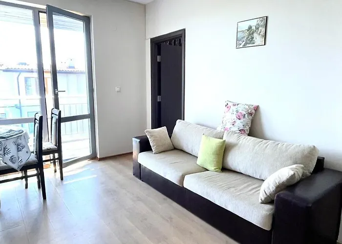 Located 2.6 km from Nesebar South Beach, the 1-room Cacao Apartment Sunny Beach is approximately a 10-minute drive from a top family-friendly place like the Sunny Beach Amusement Park. The apartment features a terrace, providing guests with seaside views of the sea.